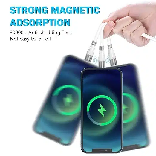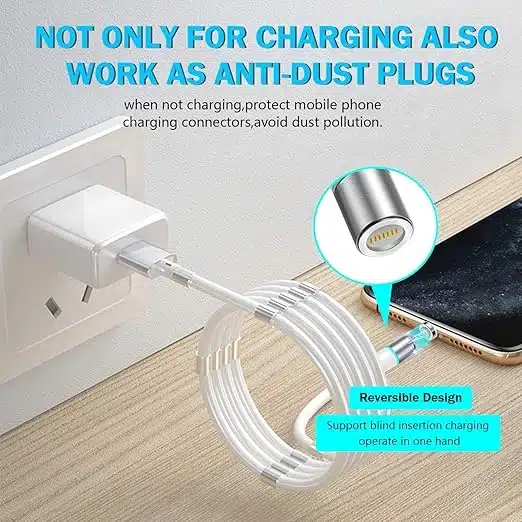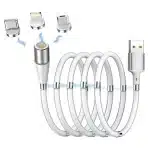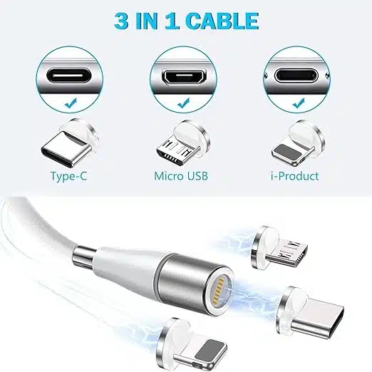 AICSimpease 360° magnetni polnilni kabel za iOS, Android in druge naprave z USB, micro USB in Type C priključki. Omogoča hitro polnjenje in zaščito pred prahom ter omogoča enostavno uporabo z eno roko.