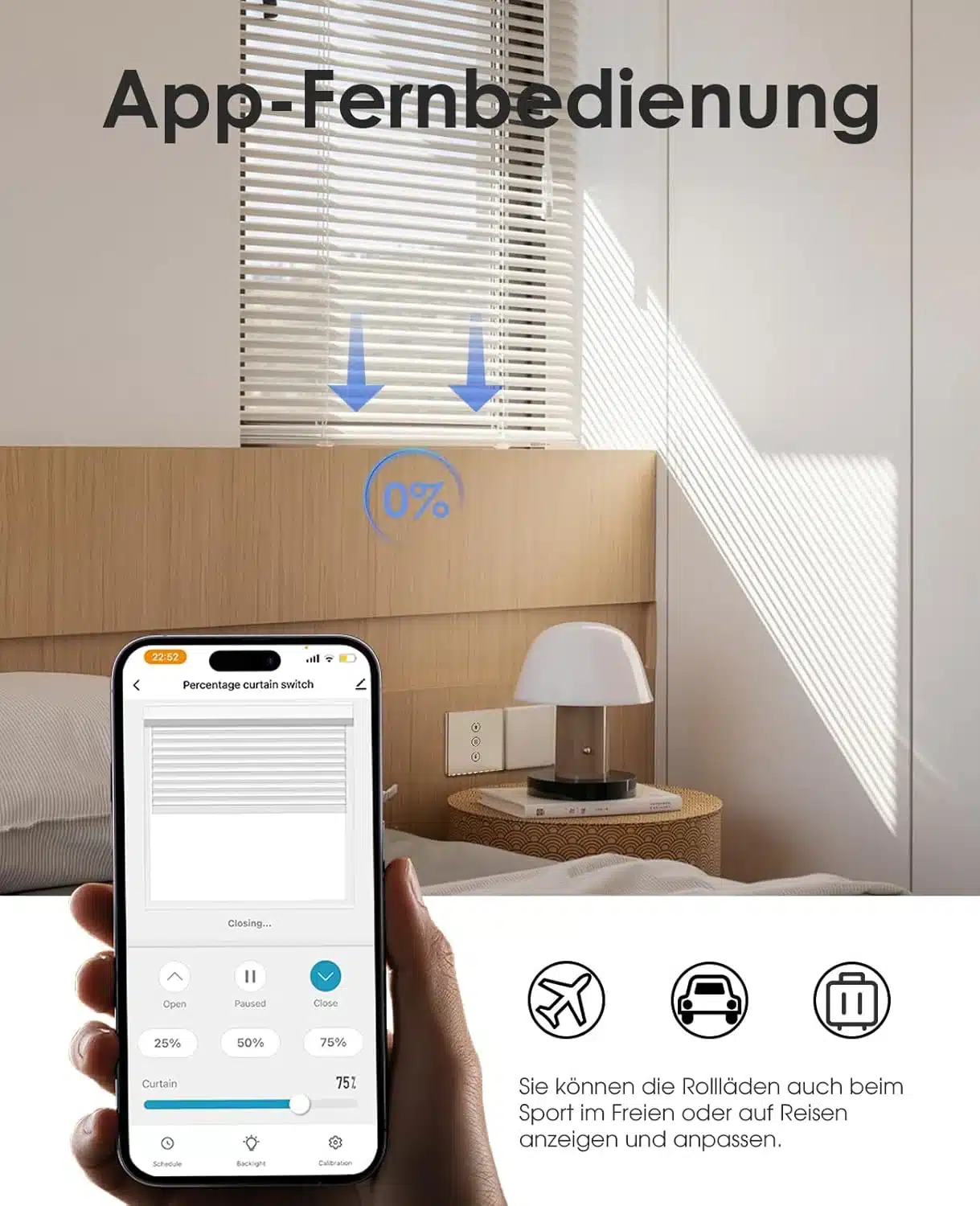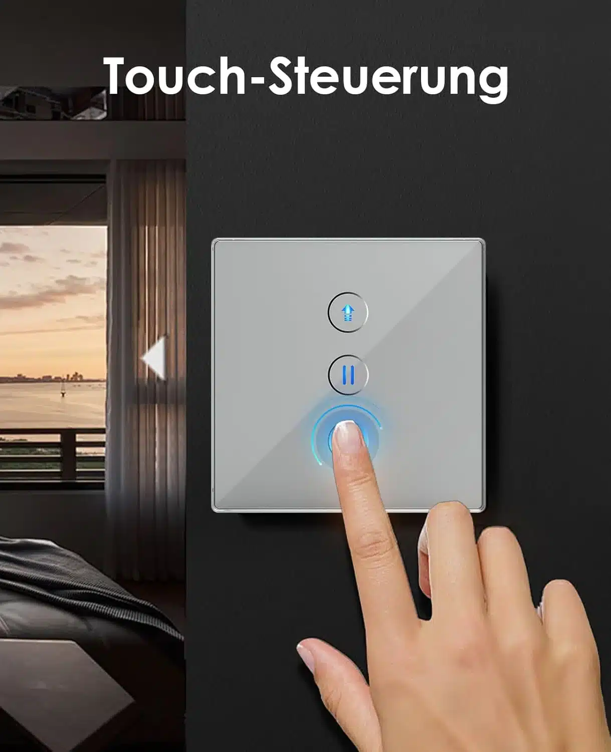 Pametno stikalo za rolete omogoča odstotkovni nadzor od 1 % do 100 % prek aplikacije ali glasovnega upravljanja. Zasnovano je za zanesljivo in stabilno delovanje v pametnem domu z izboljšanim omrežnim signalom. Kompaktna oblika omogoča enostavno vgradnjo brez oviranja sosednjih stikal.