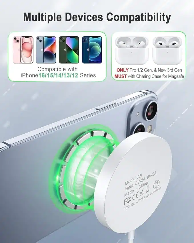 AMSKY 15W MagSafe polnilec z 20W adapterjem omogoča hitro in varno polnjenje iPhona in AirPods.