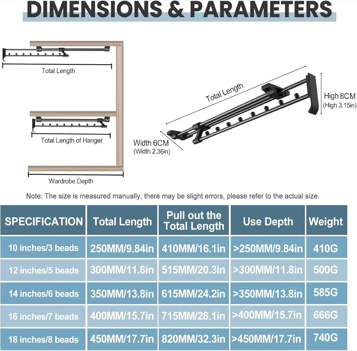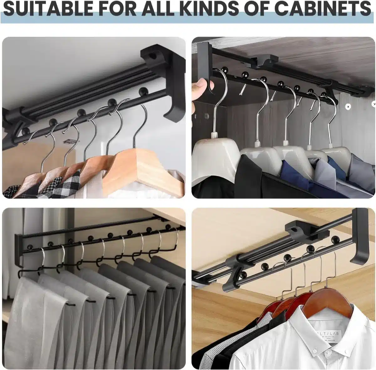 • Izvlečni mehanizem: teleskopska zasnova omogoča, da vsa oblačila izvlečete iz omare za lažjo izbiro in dostopnost.