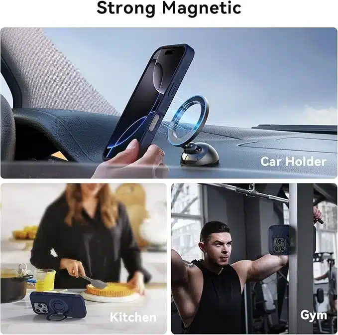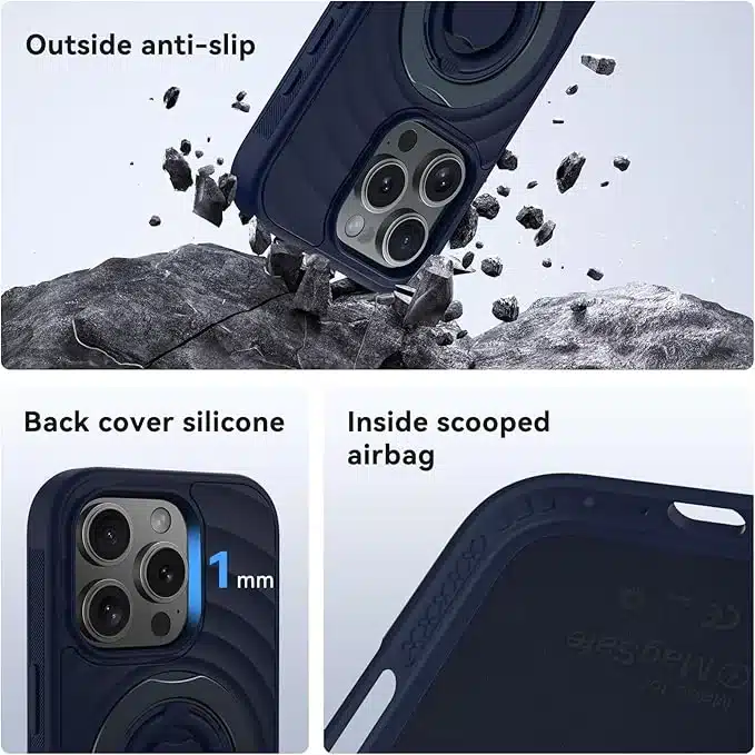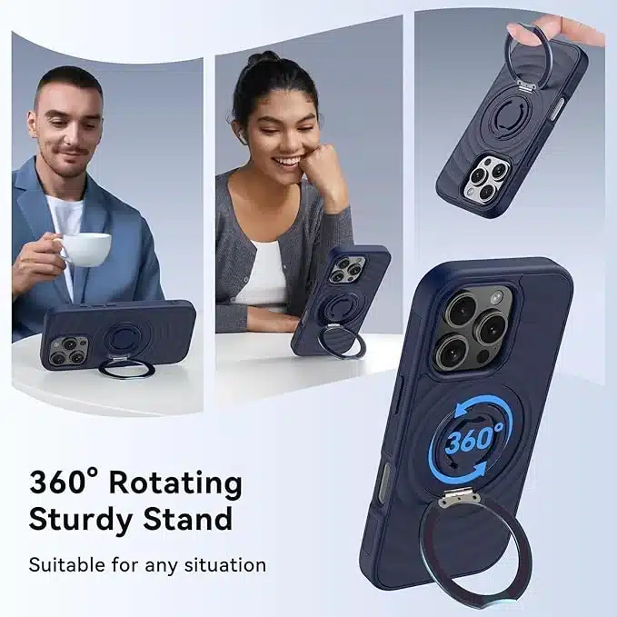 • Inovativna zasnova 3-v-1: Etui za iPhone 16 Pro Max vključuje magnete, 360° rotirajoč stojalo, ki služi tudi kot obroček, 360° rotirajoči silikonski obroč, vojaško zaščito in še več.