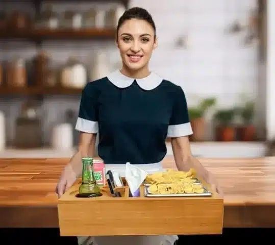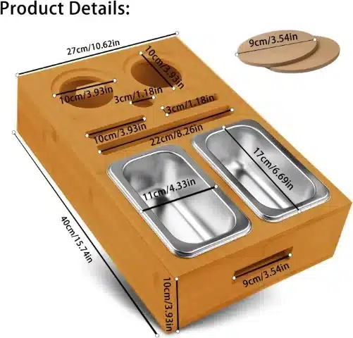 devesanter leseni kavni bar – škatla za prigrizke z 2 posodicama in 2 podstavkoma