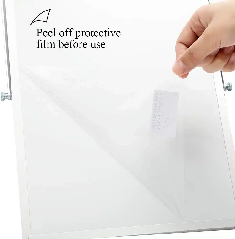 Magnetna bela tabla DOEWORKS je prenosna in primerna za domačo, šolsko ali pisarniško uporabo. Vključuje gladko pisalno površino ter stojalo za stabilno postavitev.