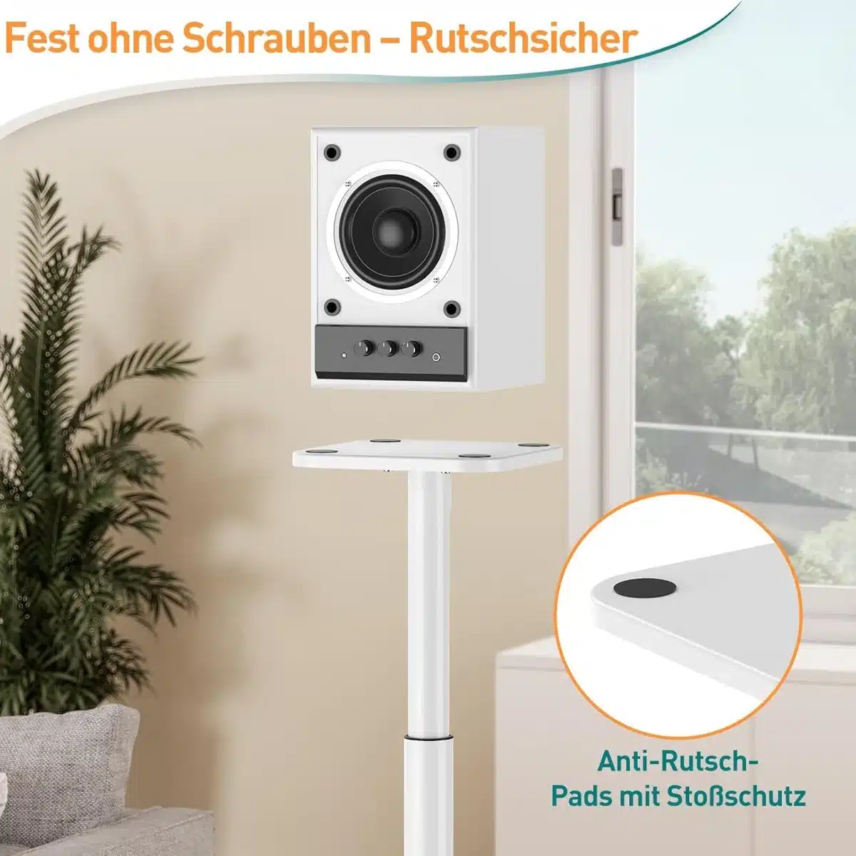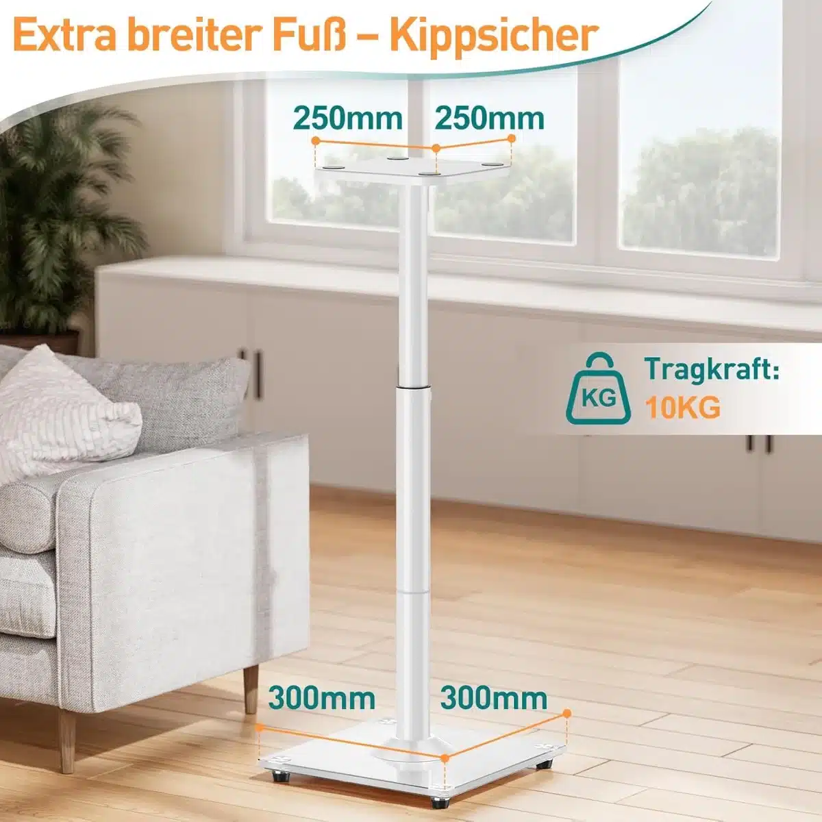 Stabilna stojala za zvočnike omogočajo nastavljivo višino od 72 do 95 cm za optimalno poslušanje. Izdelana so iz jeklene konstrukcije s stekleno osnovo, ki zagotavlja trdnost in zmanjšanje vibracij. Primerna so za večino knjižnih ali manjših zvočnikov do 10 kg.