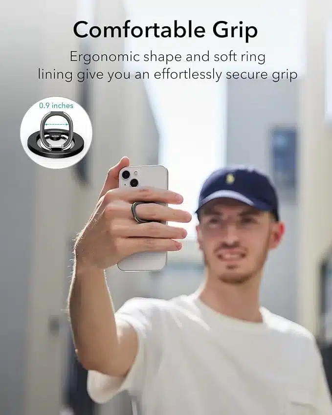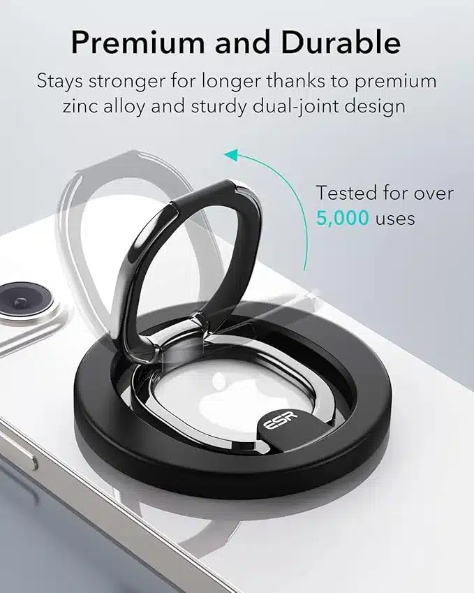 • Močna magnetna zapora: Magneti z držalom 1200 g zagotavljajo močno zaporo na telefonu brez ohišja ali telefonskem ohišju s tehnologijo MagSafe ali HaloLock. Držalo za obroč se bo odlepilo le, ko boste želeli.