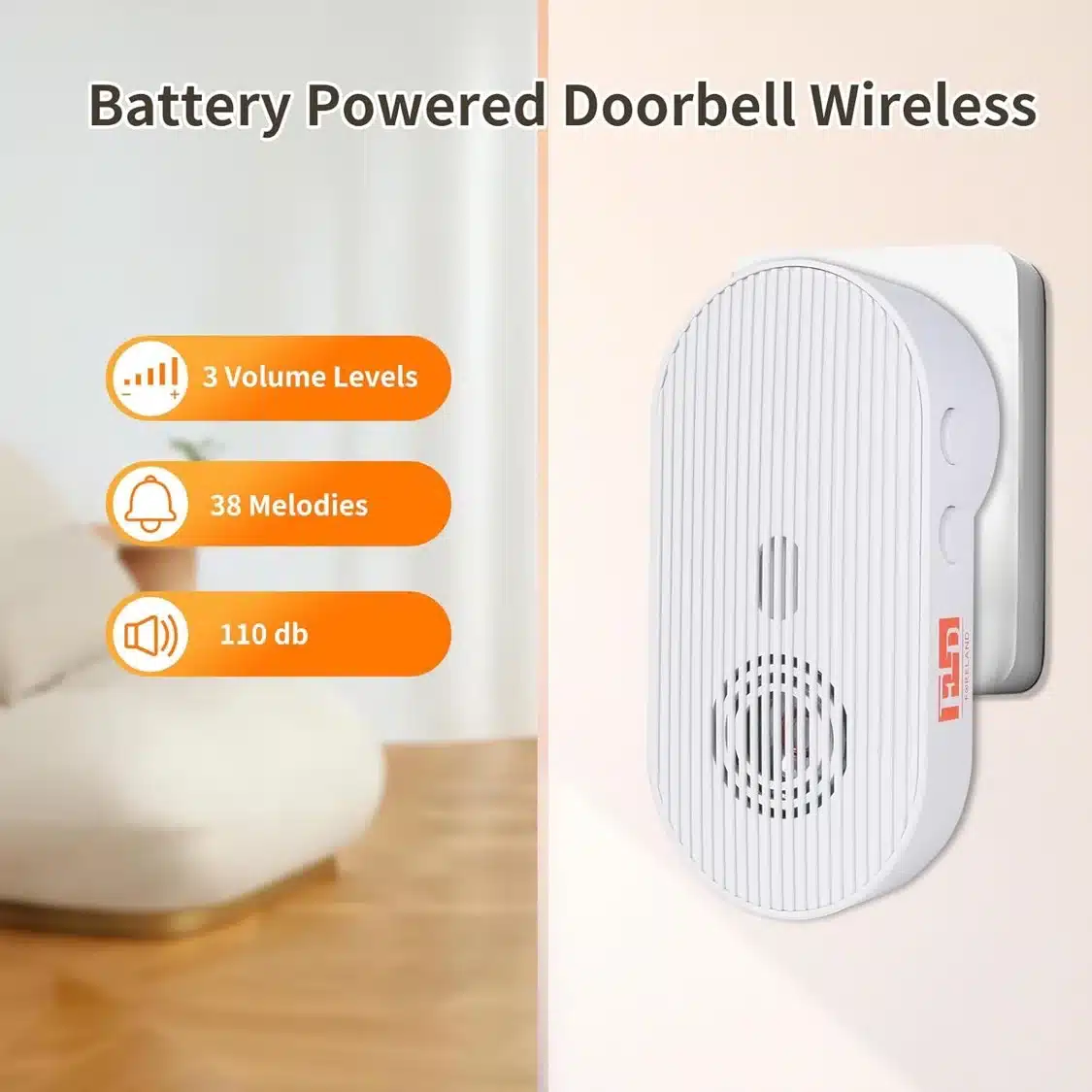 Dolgi brezžični doseg omogoča stabilno uporabo tudi v večjih objektih. Tri stopnje glasnosti in 38 melodij zagotavljajo prilagoditev po želji uporabnika. LED utripanje omogoča tiho opozorilo brez motenja, primerno tudi za osebe s slabšim sluhom.