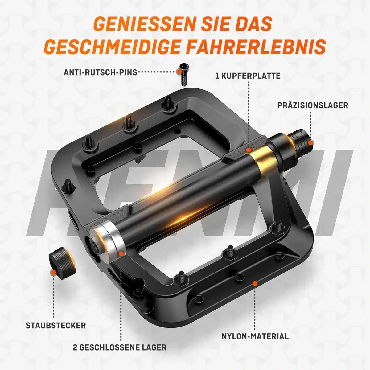 Lahki in trpežni pedali združujejo aluminijevo zlitino in najlonski kompozit, kar zagotavlja optimalno razmerje med vzdržljivostjo in udobjem. Široka platforma omogoča boljši oprijem ter stabilnost na različnih terenih. Primerni so za gorska, cestna, mestna in električna kolesa.