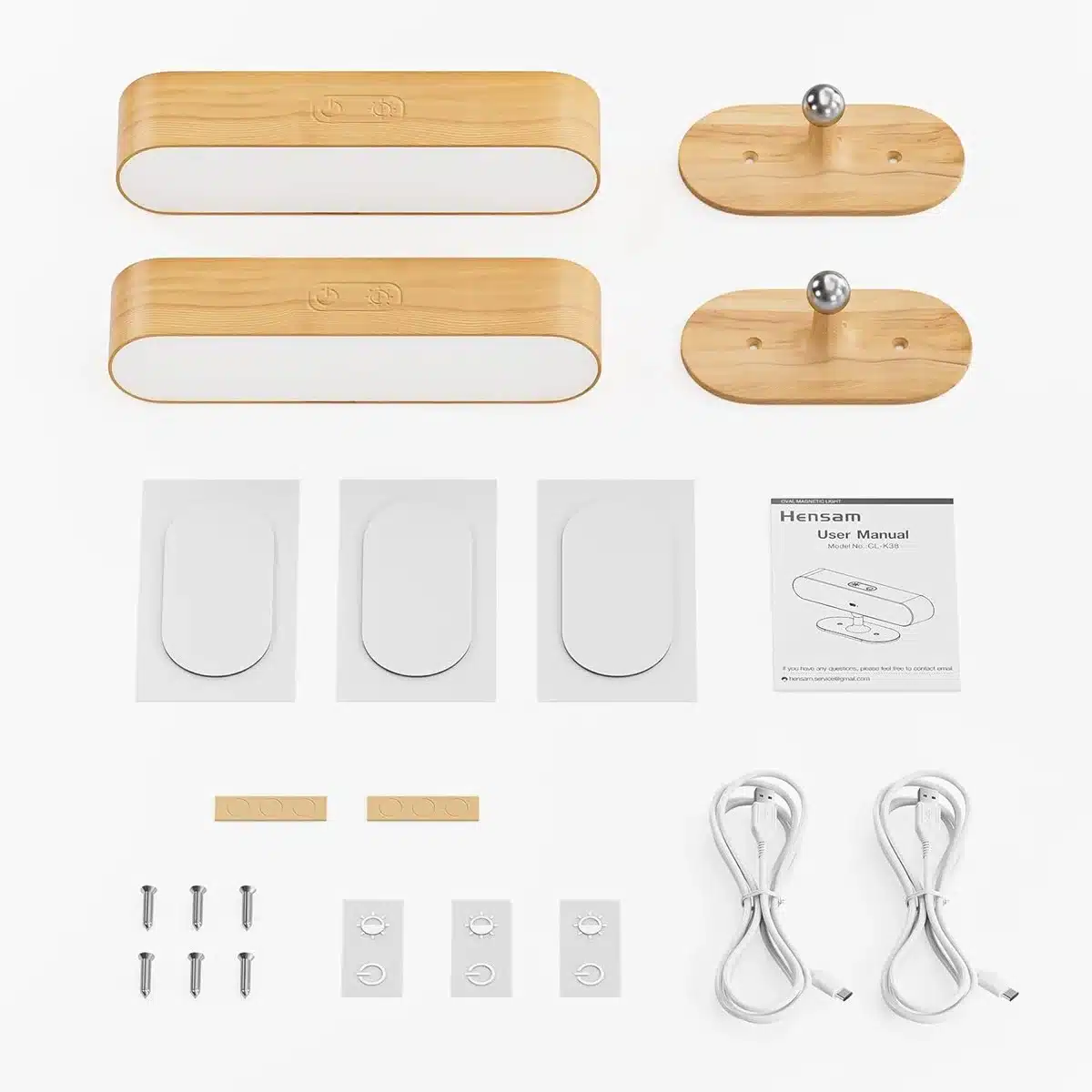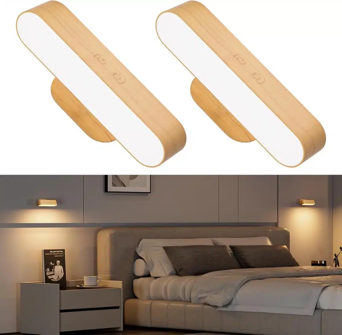 HENSAM Brezžična stenska LED svetilka z močno baterijo, 2 kosa