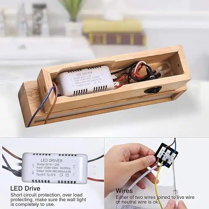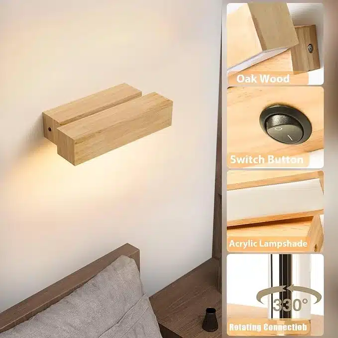 HMAKGG lesena stenska svetilka z stikalom 6 W – topla bela svetloba