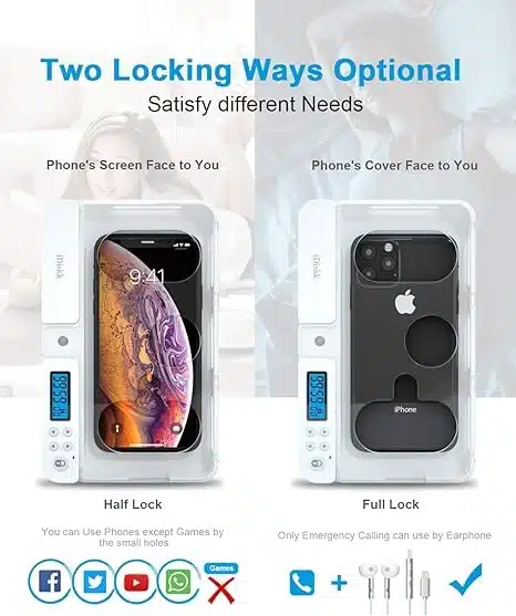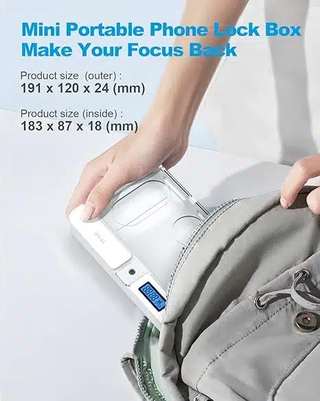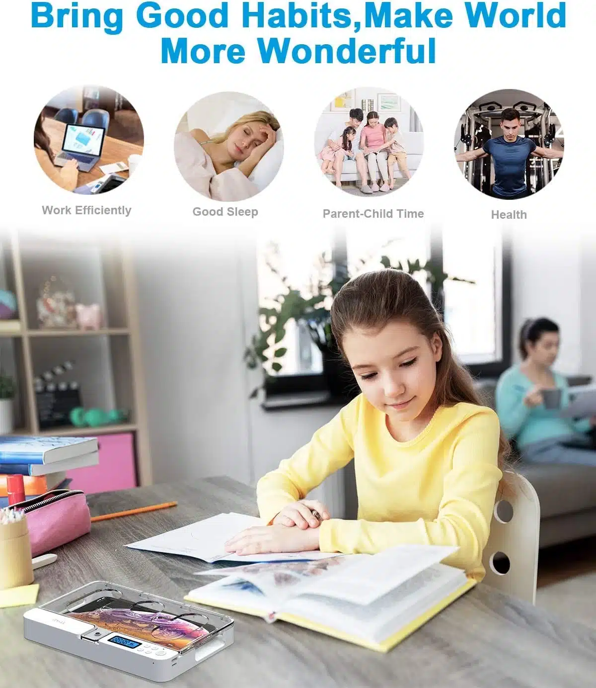 • Zaklenite svoj telefon: Ta varnostni kovček omogoča zaklepanje vašega telefona, da ga držite izven dosega. Preživite več časa z družino, prijatelji ali pri delu, namesto da bi bili zasvojeni z internetom.