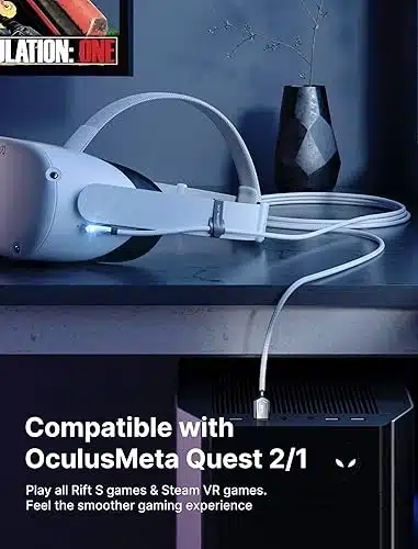 JSAUX 5m VR Link kabel za Oculus Quest 2 in PC, omogoča hitro povezovanje z računalnikom in igrami Steam VR brez prekinitev. Kabel je trpežen, fleksibilen in omogoča hitro polnjenje ter brezskrbno igro v VR svetu.