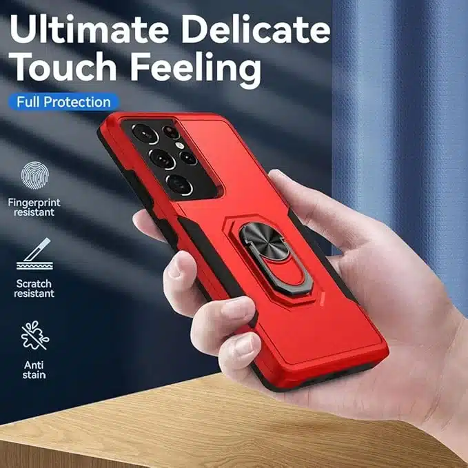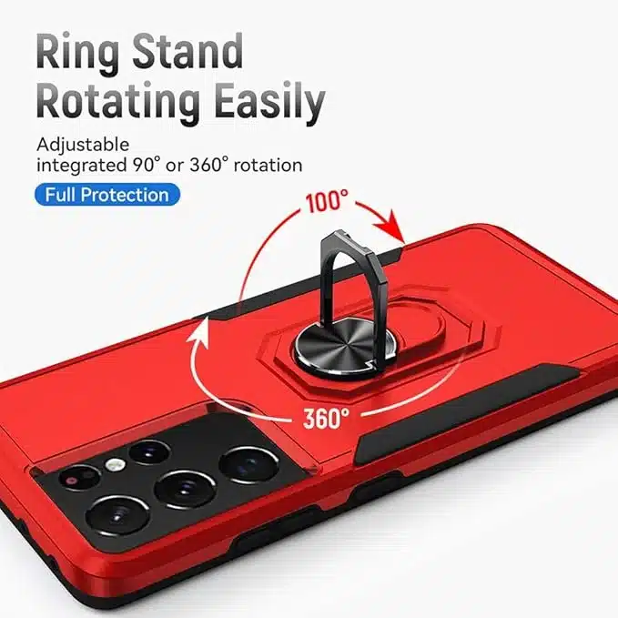 Ovitek KANCIKOO za Samsung Galaxy S21 Ultra 6.8″ nudi odlično zaščito z vojaško odpornim dizajnom in praktičnim 360° vrtljivim obročkom, ki ga lahko uporabljate kot stojalo ali dodatno zaščito pred padci. Vgrajen magnetni list omogoča uporabo z magnetnimi nosilci za avto. Ovitek je izdelan iz kombinacije trpežnega polikarbonata in termoplastičnega poliuretana, kar zagotavlja popolno zaščito in dolgotrajno uporabo.