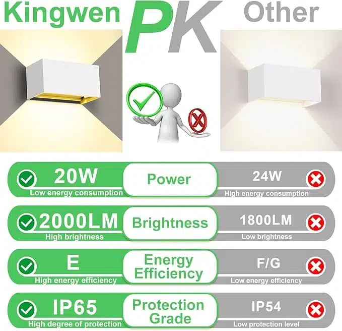 Kingwen 20 W LED Stenska Svetilka, 3000 K, IP65 Vodoodporna