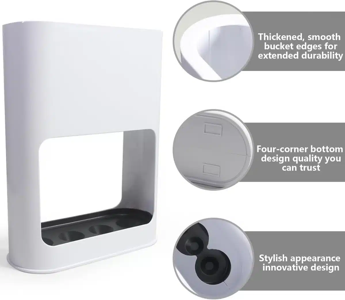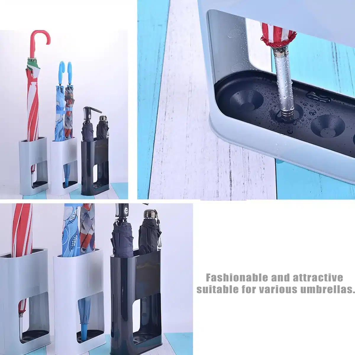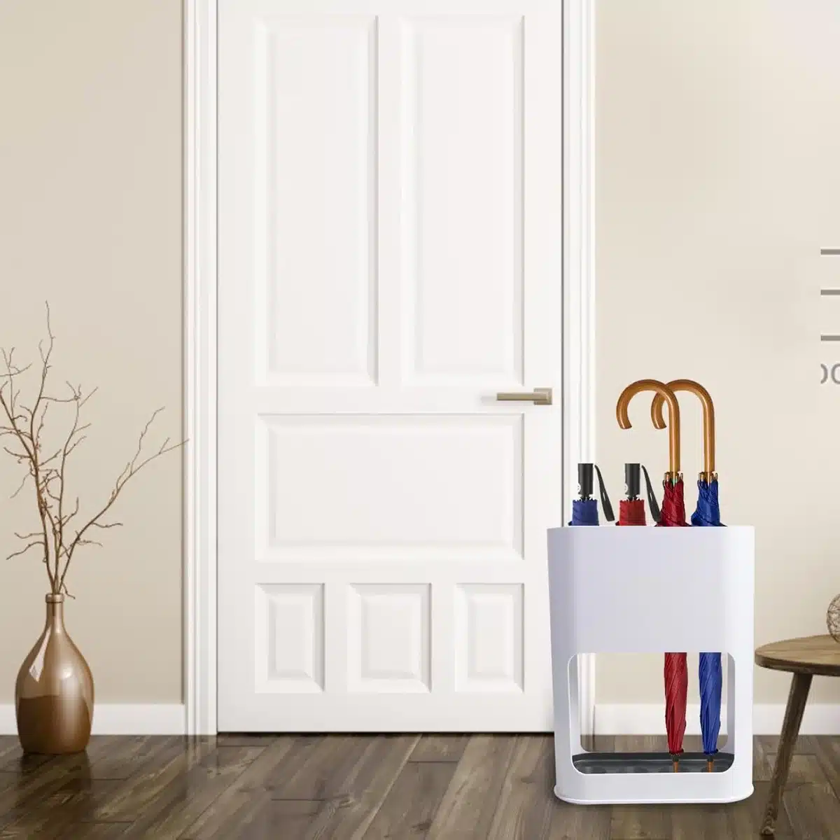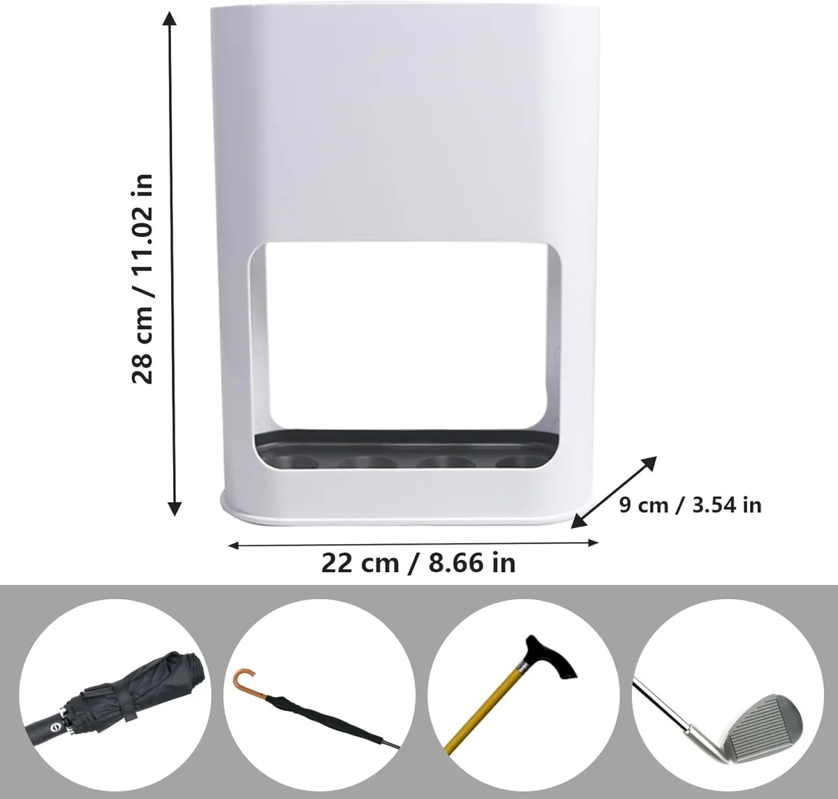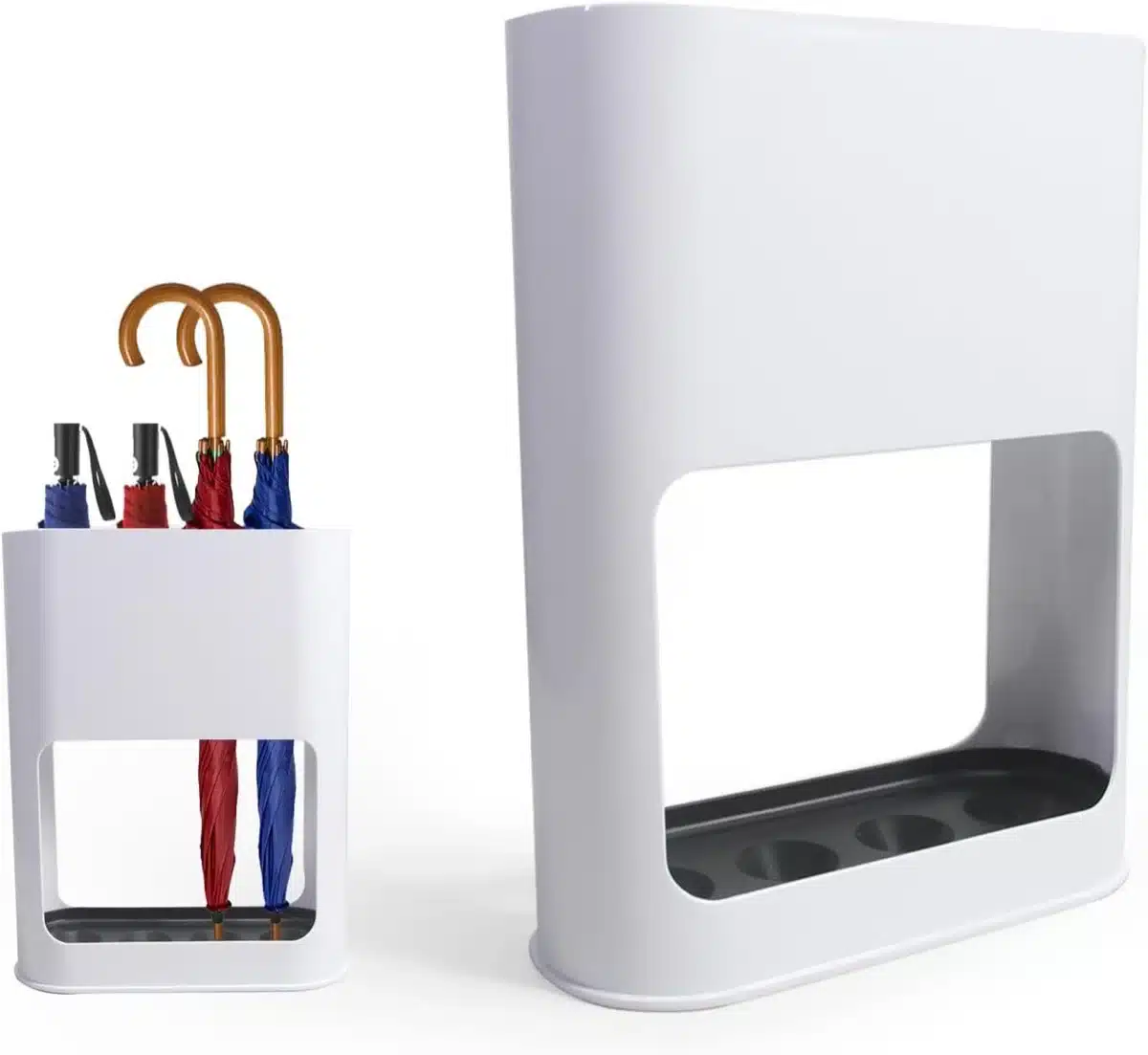 To elegantno stojalo za dežnike ponuja popolno rešitev za shranjevanje dolgih in zložljivih dežnikov, hkrati pa zavzame minimalno prostora. Izdelano je iz visokokakovostnega ABS materiala in ojačano z notranjo železno ploščo, ki zagotavlja stabilnost in preprečuje prevračanje. Izdelek je idealen za stanovanja, pisarne ali predsobe, kjer želite ohraniti prostor organiziran in urejen.