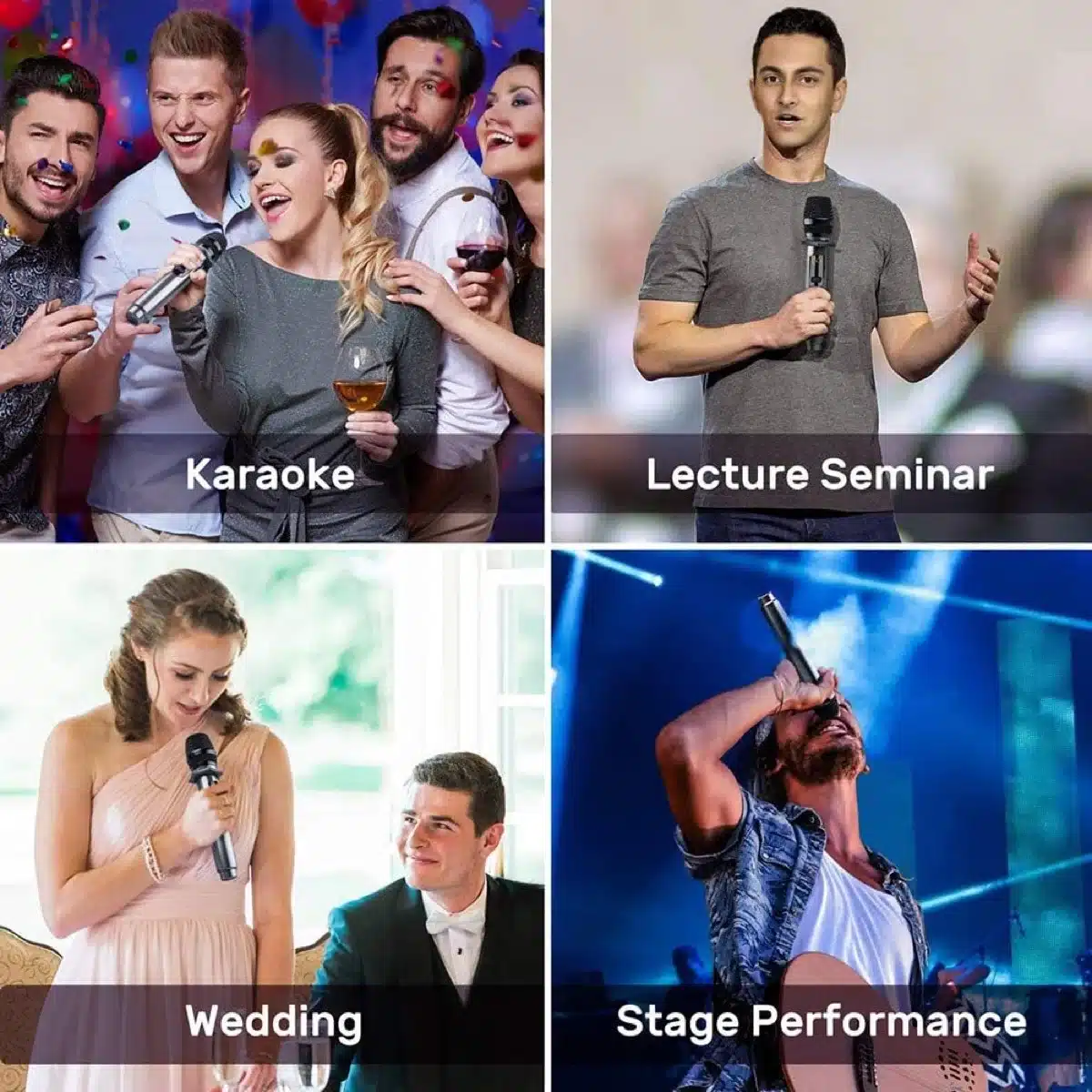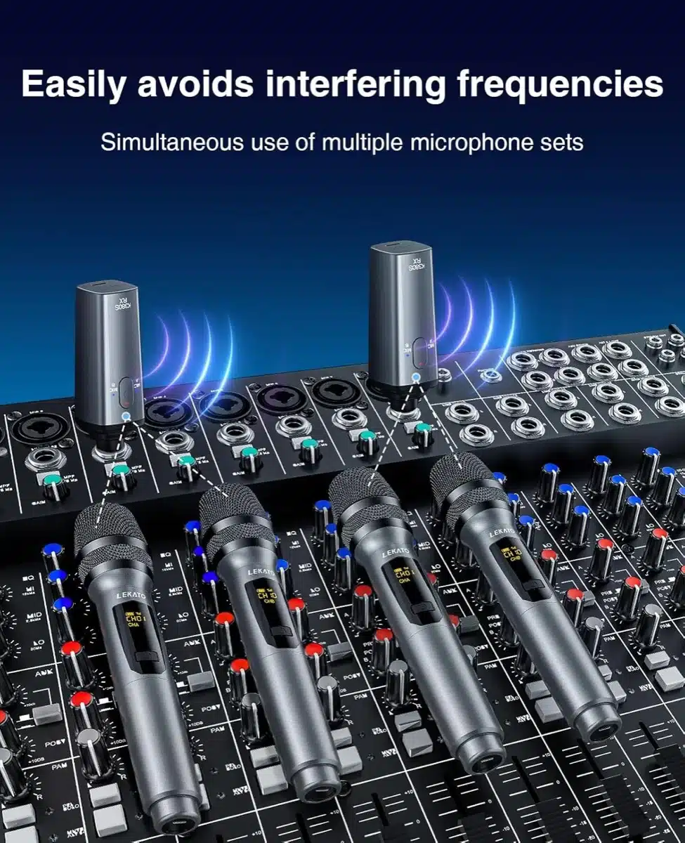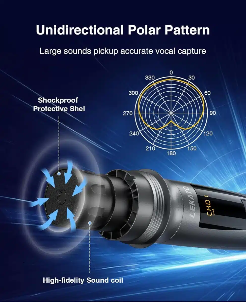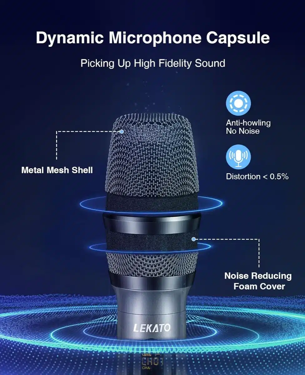 Mikrofoni LEKATO so zasnovani za zahtevne uporabnike, ki cenijo preprostost in zmogljivost, saj delujejo po sistemu “vklopi in igraj” (Plug-and-Play) brez zapletenih nastavitev. Sprejemnik se enostavno poveže z zvočniki, ojačevalniki ali karaoke napravami prek standardnega 6,35 mm priključka, vgrajena funkcija za dušenje hrupa pa poskrbi, da vaš glas ostane v ospredju tudi v hrupnih okoljih. Robustna aluminijasta cev in kovinska mrežica z zaščitnim lakom zagotavljata varno uporabo, medtem ko inteligentni indikatorji napolnjenosti baterije preprečujejo neprijetna presenečenja sredi nastopa. Sistem podpira sočasno uporabo do desetih kompletov na istem območju, kar omogoča izvedbo večjih dogodkov brez medsebojnih motenj signalov, zaradi česar je ta set nepogrešljiv pripomoček za ustvarjalce vsebin, pevce in profesionalne govorce.