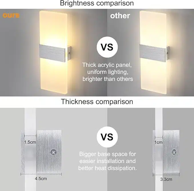 • Debelina akrilnega telesa svetilke je 1,5 cm, kar zagotavlja enakomerno in brezbleščeno svetlobo.