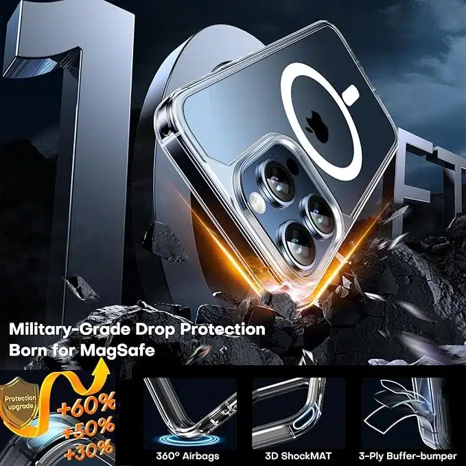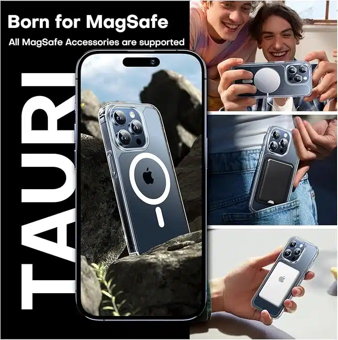 TAURI MagSafe ovitek za iPhone 15 Pro Max z naprednim premazom, večslojno zaščito pred padci in kaljenim steklom za zaslon ter kamero.