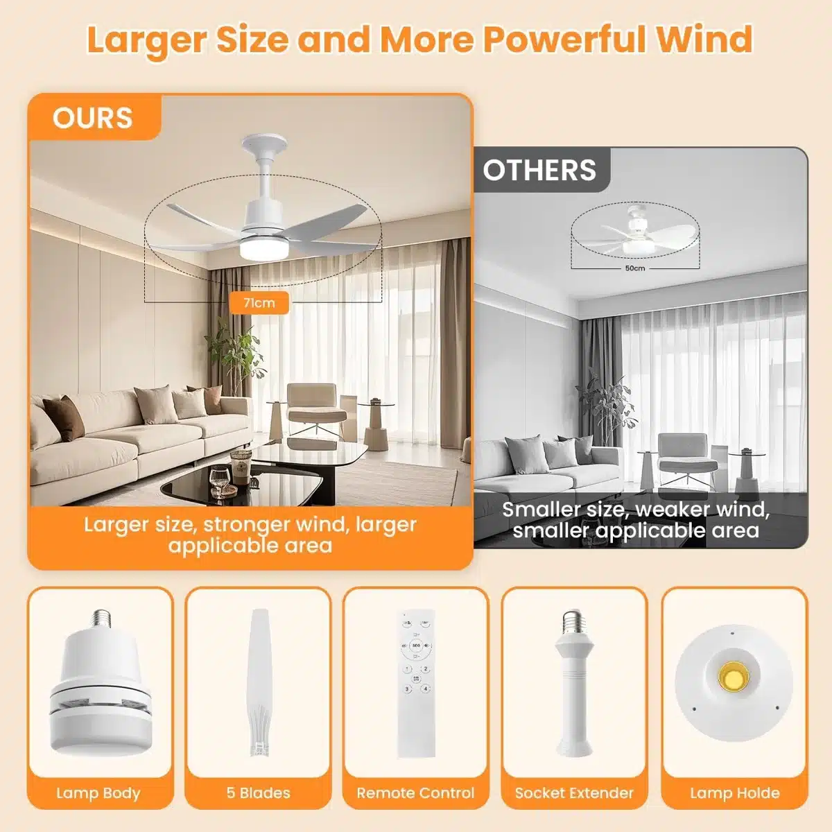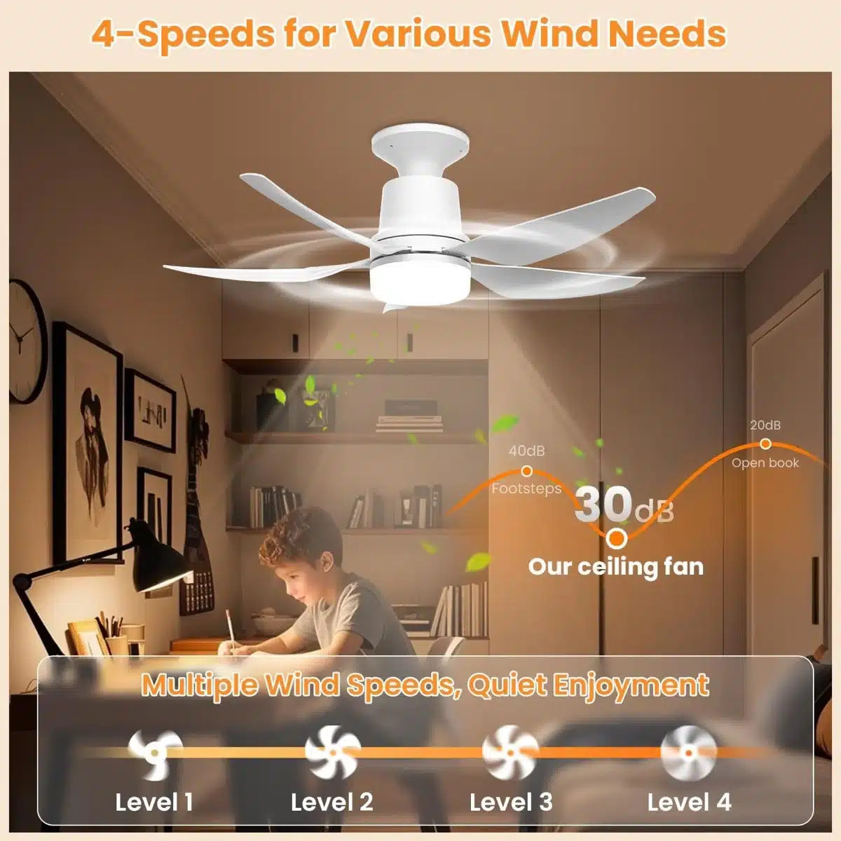 Kompakten stropni ventilator z integrirano LED osvetlitvijo 3000K–6500K in praktičnim daljinskim upravljalnikom omogoča udobno prilagajanje svetlobe in pretoka zraka. S premerom 71 cm učinkovito prezrači manjše in srednje velike prostore ter hkrati zagotavlja enakomerno osvetlitev. Primeren je za spalnice, kuhinje, delovne sobe in druga notranja okolja, kjer želite združiti svetlobo in hlajenje v eni napravi.