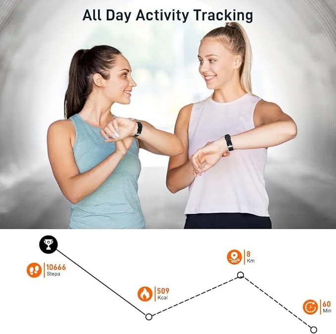 Pametna ura z 1,69″ zaslonom na dotik, IP67 vodoodpornostjo, sledenjem srčnemu utripu in spanja ter 24 športnimi načini za spremljanje zdravja in aktivnosti. Povezava z mobilno aplikacijo in dolgo trajanje baterije.