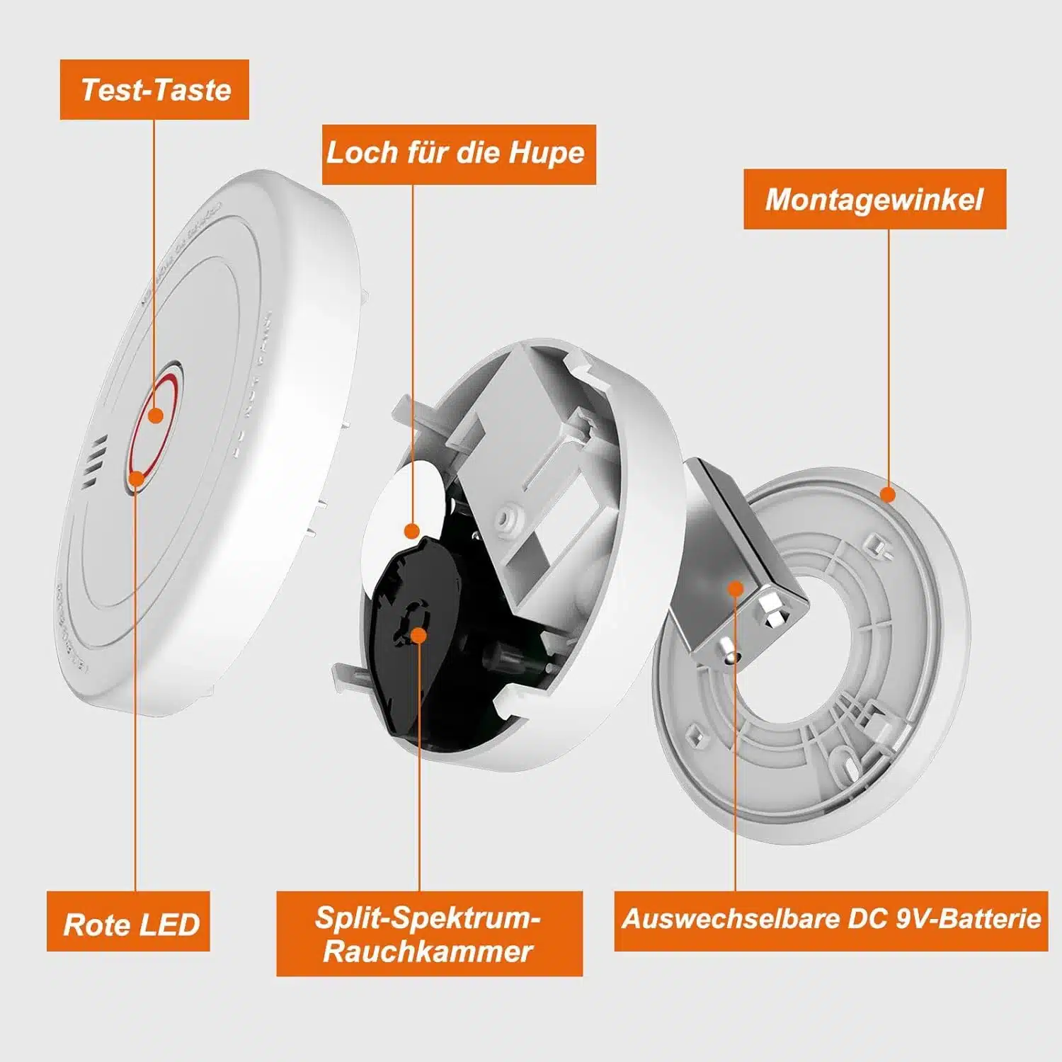 Zanesljiva detekcija dima z dolgo življenjsko dobo senzorja in zamenljivo baterijo zagotavlja varnost doma ali pisarne. Enostavna montaža z magnetnim nosilcem omogoča hitro in brezhibno namestitev brez vrtanja.