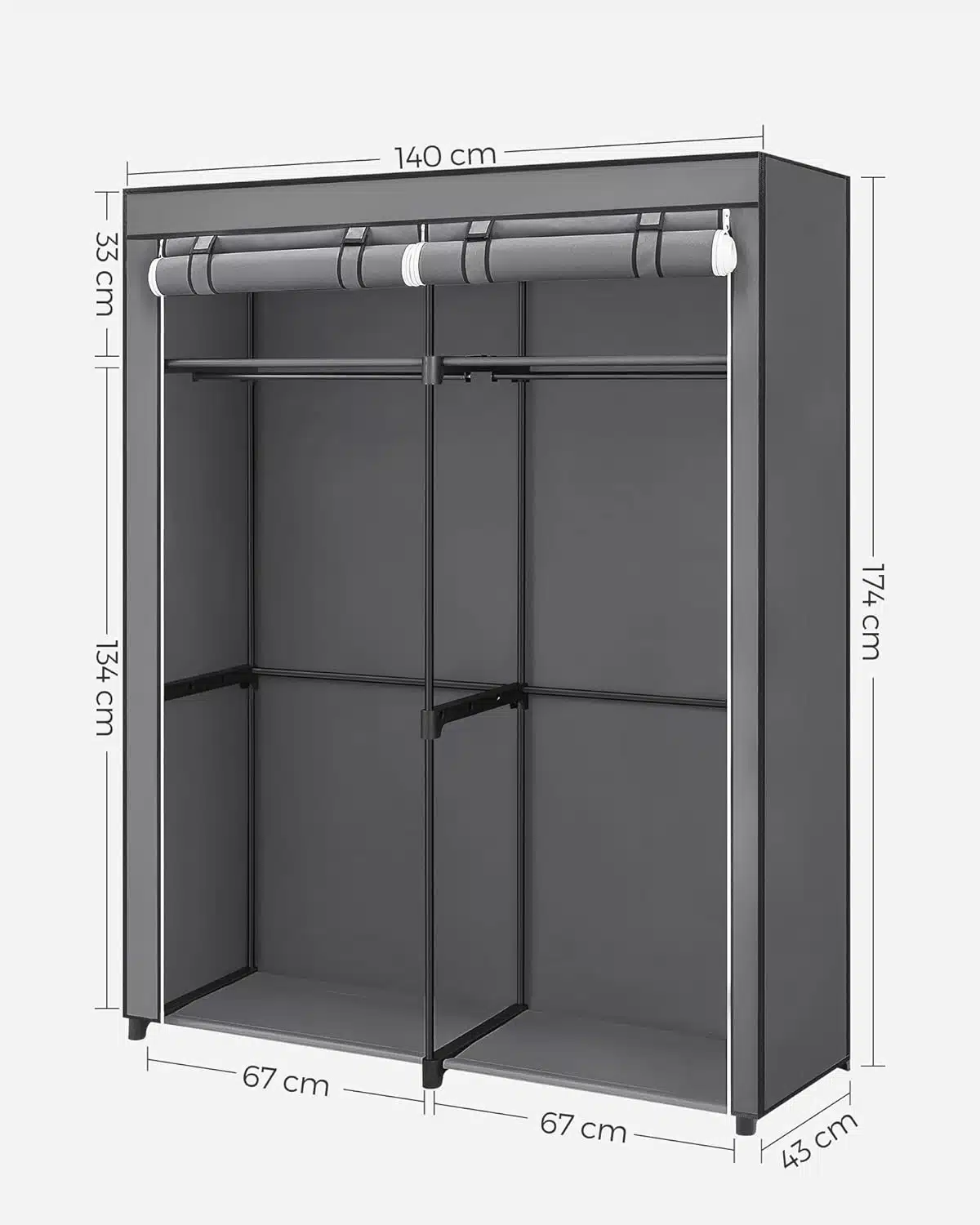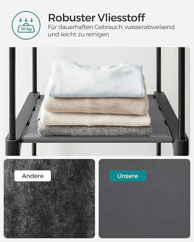 Praktična omara iz blaga nudi veliko prostora za oblačila, torbe in dodatke. Enostavno sestavljanje omogoča hitro postavitev v spalnici ali garderobi.
