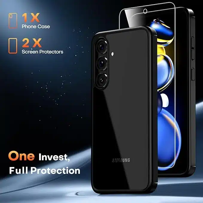 TAURI ovitek za Samsung Galaxy S24 FE nudi celovito zaščito z dodatnima kaljenima stekloma, ki ščitita zaslon pred praskami in poškodbami. Kljub popolni zaščiti ohranja izjemno tanek profil, ki omogoča brezžično polnjenje brez odstranjevanja ovitka. Kristalno čista zasnova ostaja brez rumenenja zahvaljujoč nano antioksidantni plasti.