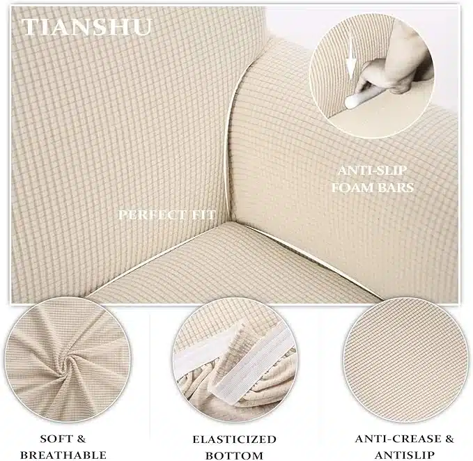 • Elastičnost: Elastična osnova pokriva prevleko za kavč čez celotno pohištvo, tudi če se popolnoma premakne.