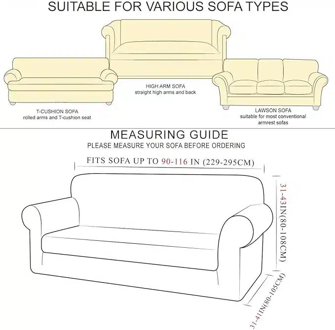• Pozor: To je prevleka za kavč, ne kavč sam. 1 sedež: primerna za kavč do 34-45 palcev (80-115 cm). 2 sedež: primerna za kavč do 45-70 palcev (114-178 cm). 3 sedež: primerna za kavč do 70-90 palcev (178-229 cm). 4 sedež: primerna za kavč do 90-116 palcev (229-295 cm).
