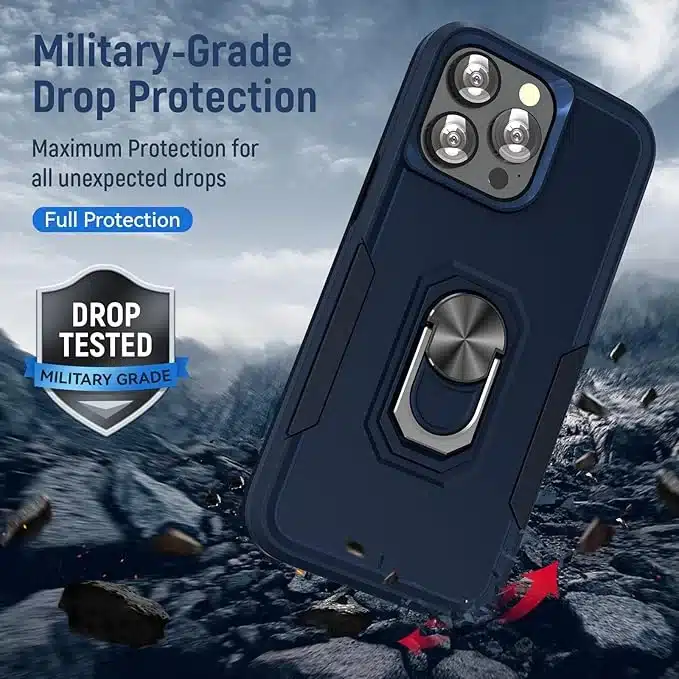360° vrteči obroč omogoča prostoročno uporabo in preprečuje padec telefona. Etui je zelo trpežen in nudi odlično zaščito pred padci, praskami in udarci.