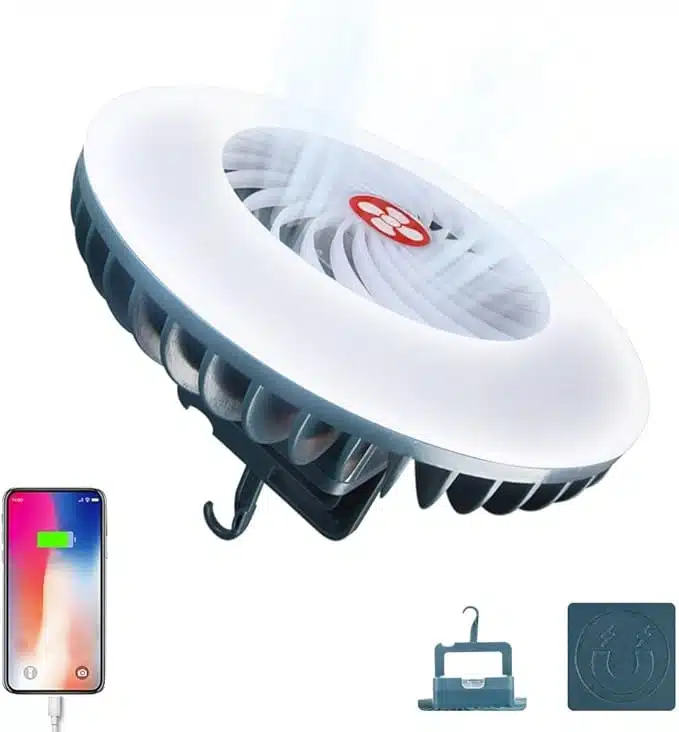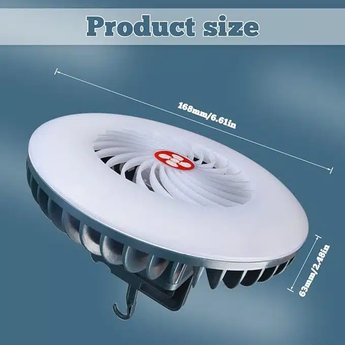 WingFly kamping ventilator s svetilko je prenosna LED svetilka z ventilatorjem, ki ponuja 3 nastavitve hitrosti in 3 svetlobne nastavitve. Polni se preko USB kabla in ima dolgo življenjsko dobo baterije. Zasnova vključuje prenosno funkcionalnost z magnetnim dnom in sklopljivim zankom za enostavno obešanje ali postavitev. Idealno za kampiranje, pohodništvo, dom ali pisarno.