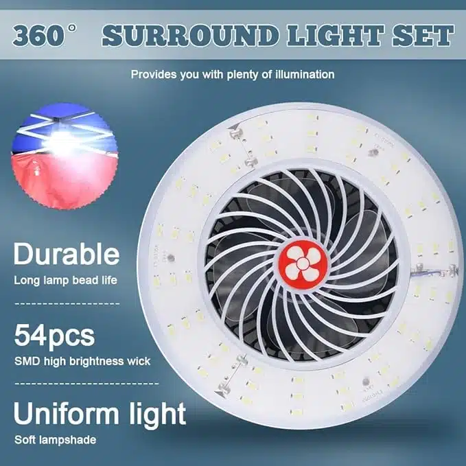 WingFly Kamping ventilator z lučko, prenosna LED svetilka za kampiranje