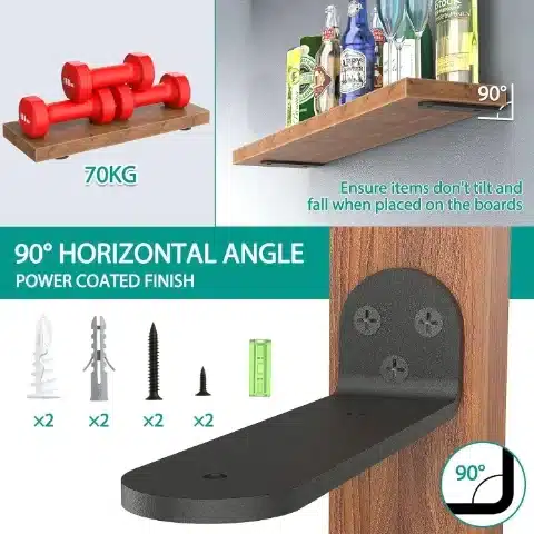 Trdna kovinska nosilca sta primerna za montažo lesenih polic širine od 20 do 25 cm. Visoka nosilnost omogoča varno uporabo v različnih prostorih doma ali v delavnici.