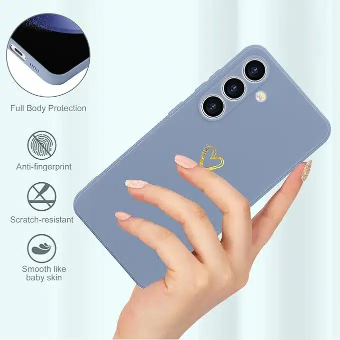 Wirvyuer ovitek za Samsung Galaxy S23 FE ponuja tanek in eleganten dizajn z ljubkim zlato srčkastim vzorcem, ki dodaja pridih stila in prefinjenosti. Izdelan iz mehkega silikona, ki nudi prijeten občutek na dotik, ovitek prav tako zagotavlja zaščito pred udarci in praskami. Natančno izrezani odprtine omogočajo enostaven dostop do vseh funkcij telefona, hkrati pa omogočajo brezžično polnjenje brez odstranjevanja ovitka.