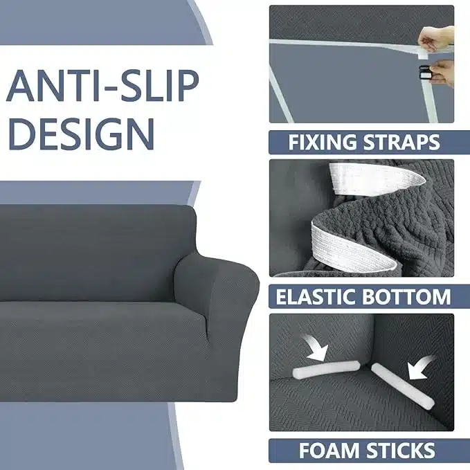 Resnična protidrsna zaščita: Naša protidrsna zaščita za kavč je opremljena s protidrsno elastično osnovo in visokokakovostnimi protidrsnimi penastimi vložki. Dvojna protidrsna zaščita zagotavlja, da bo naša univerzalna prevleka za kavč kot nalašč za vaš kavč, tudi če se otroci igrajo na kavču in ga umažejo, bo ostala trdno na svojem mestu in se ne bo drsela – idealno za družine z otroki.